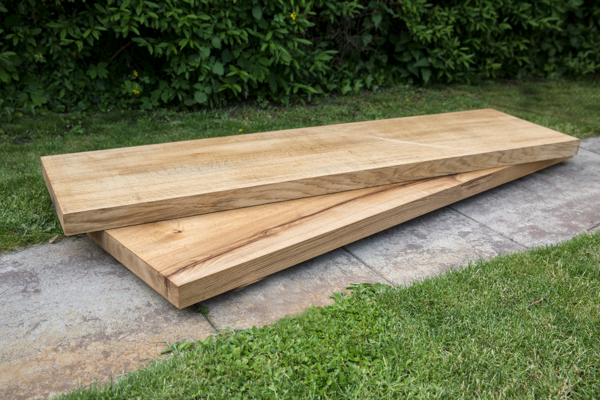 Massive Eichenholzbalken & Eichenholzbretter mit Epoxid aufgefüllten Rissen